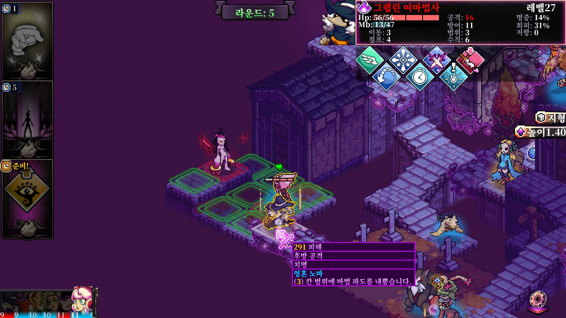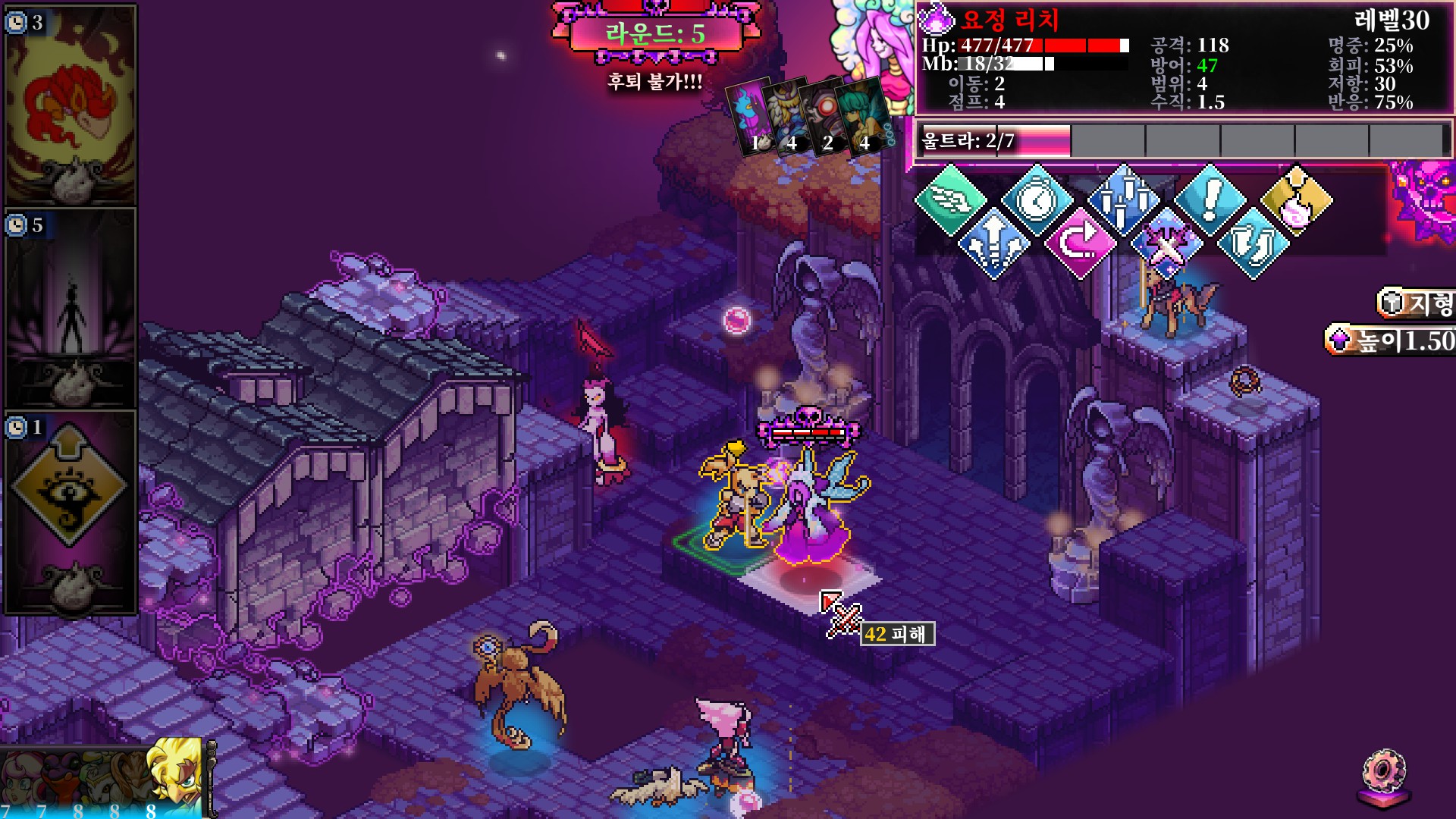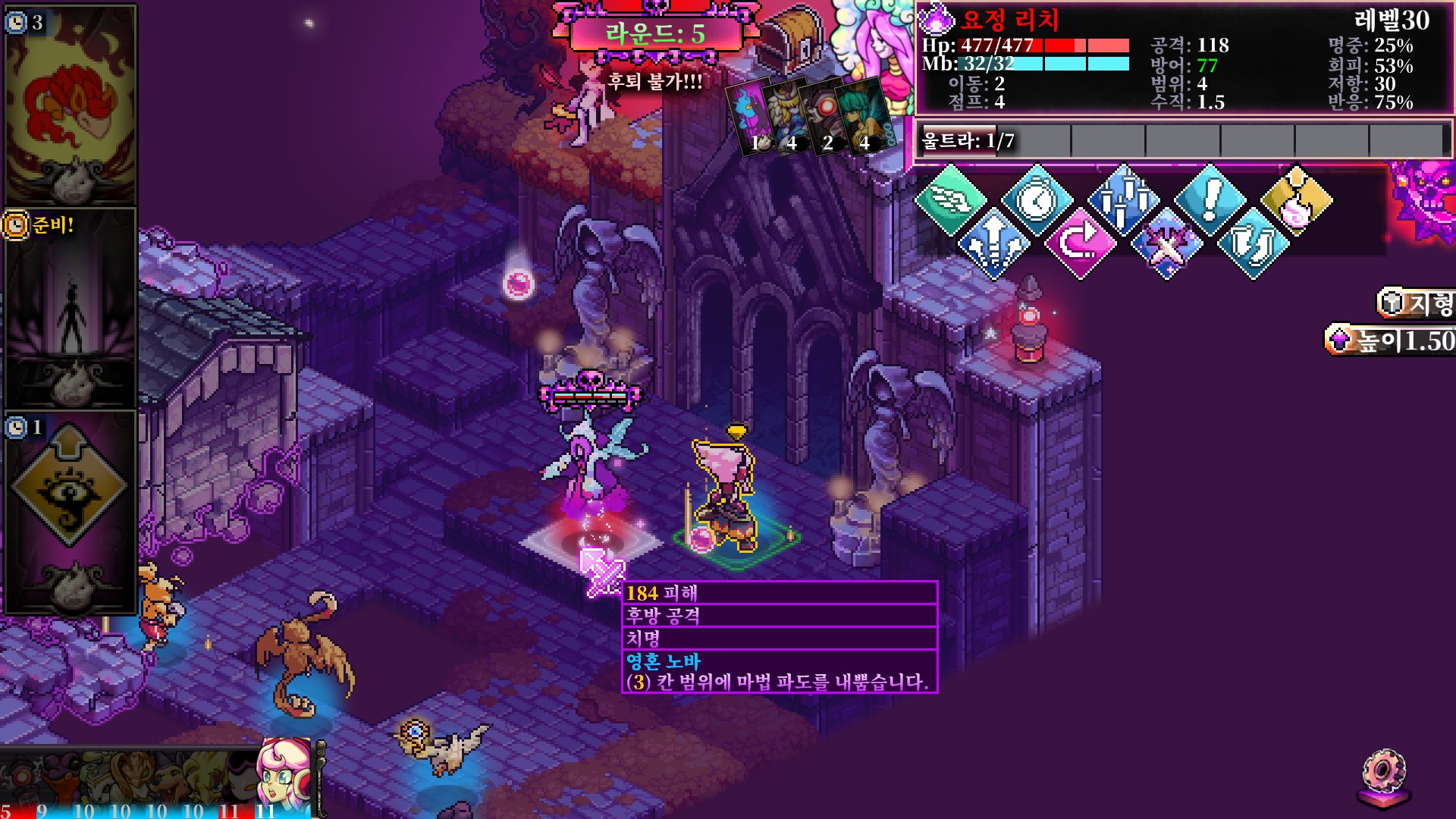 보스와 싸울 준비가 됐습니다. 요정 리치가 움직일 때까지 턴 늦추기를 씁니다.