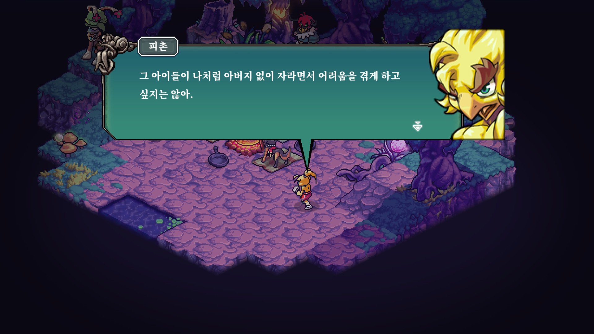 지나간 일이지만, 피촌도 잉겐튼 스토리 이후 야영하다 보면 배경 스토리가 나옵니다. 피촌이 잉겐튼에서 만난 가족은 피촌과 혈연관계는 아닙니다. 피촌이 아버지 없는 가정에 아버지 역할을 하는 것입니다. 이 이벤트에서 피촌 뿐 아니라 피오니도 아버지가 없다는 사실을 알 수 있습니다.