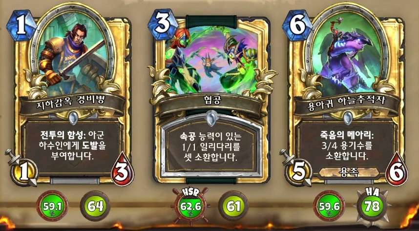 16. 스톰윈드 생태계 파괴범 골락카 조리사가 나왔습니다. 저런 카드는 컨트롤 덱에서 쓰기 좋습니다. 사자의 근위병, 모아그 괴철로마귀 이런 라인입니다. 용사의 진은검 선택