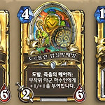 1. 버킷 2. 악어는 좋습니다. 구덩이 악어 선택 2. 천벌, 주문석은 3~3.5버킷. 원정은 3.5~4버킷. 이번 시즌에 자주 나오는 드루이드 카드입니다. 1마나 내고 발견하는 카드는 기본적으로 필요 없습니다. 주사위 굴려서 오아시스 정령, 전쟁의 고대정령, 발톱의 드루이드를 뽑을 수 있는 가능성은 있습니다. 드루이드 제압기는 암습, 할퀴기, 벌떼가 좋지만, 천벌도 옆 카드 보고 집을만합니다. 천벌 선택 3. 월척수와 최강자 둘 다 좋아하는 카드. 왕년의 최강자 선택 4. 셋 다 버킷 7에서 뽑을 수 있는 좋은 카드입니다. 드루이드는 야생의 징표+의술사 같은 콤보도 있지만, 지금은 징표가 없습니다. 수습생은 다들 자주 쓰는 카드. 톨비르 바위세공사는 희귀 카드라 자주 나오지는 않는데, 흉악한 전투의 ..